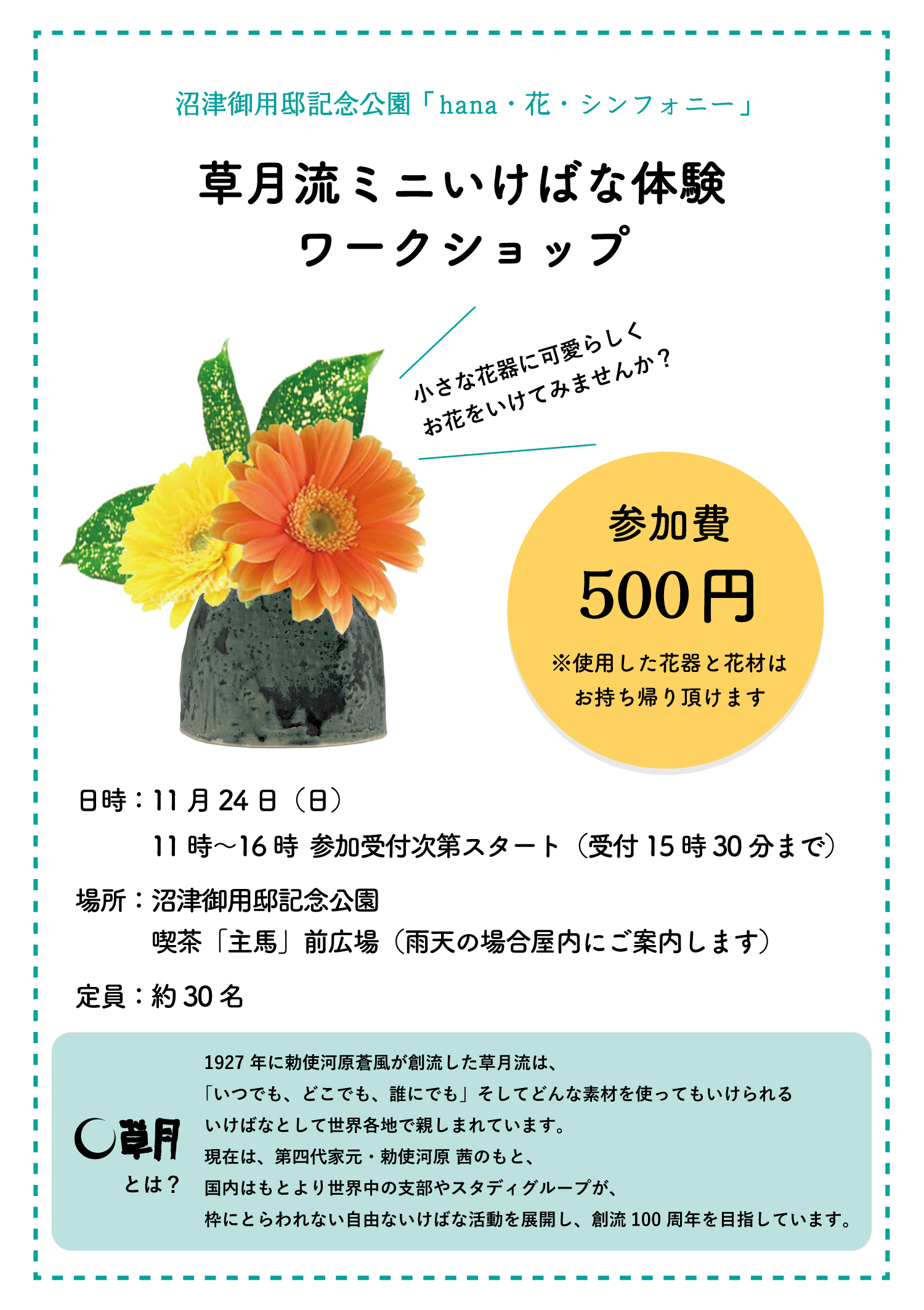 ミニいけばな体験ワークショップ、沼津御用邸記念公園にて開催