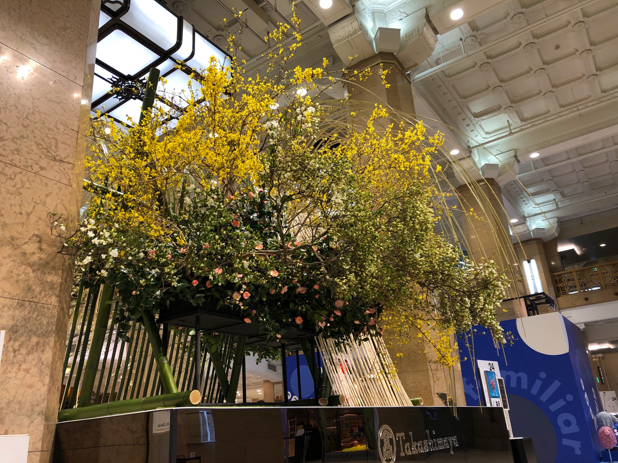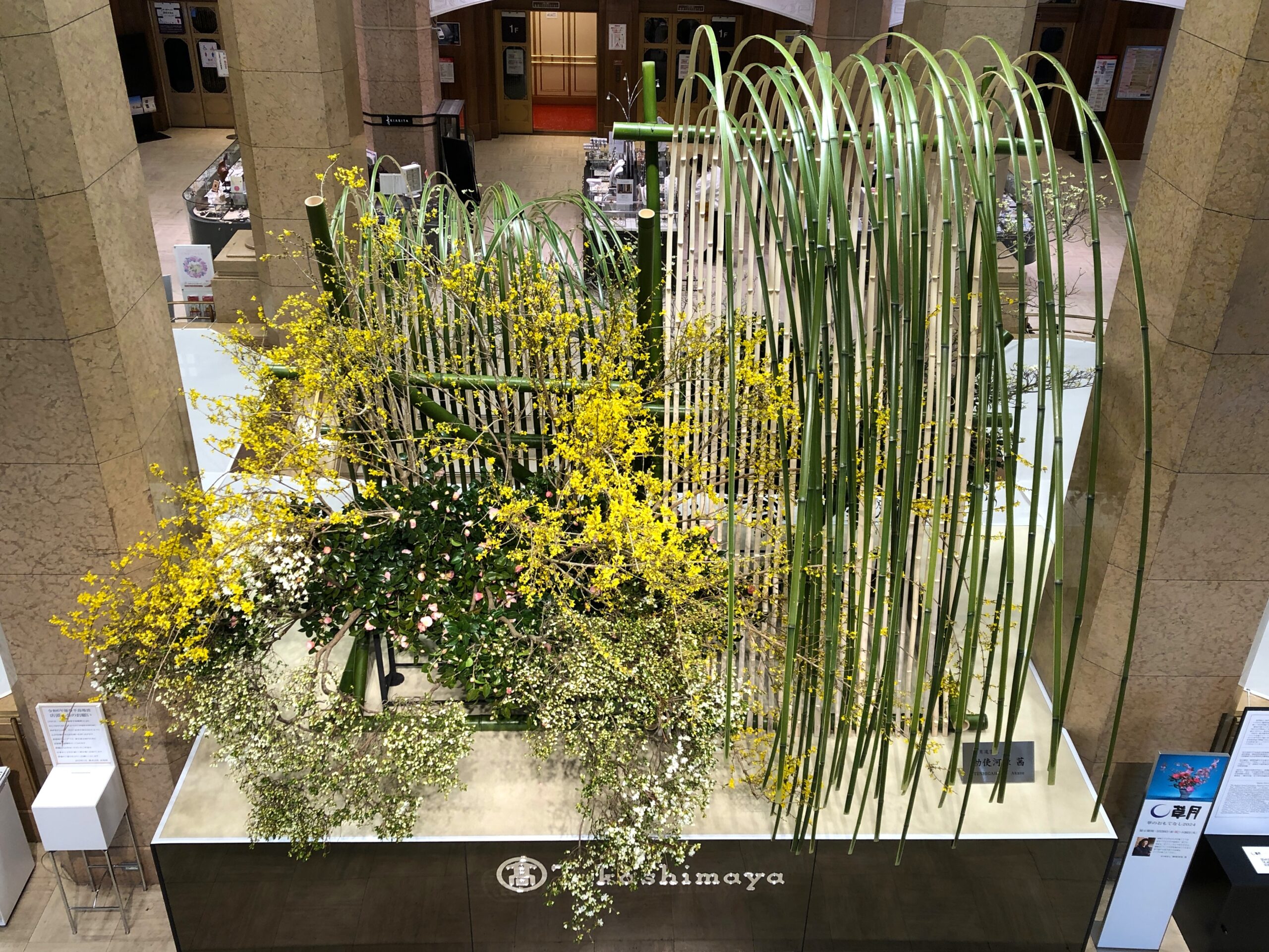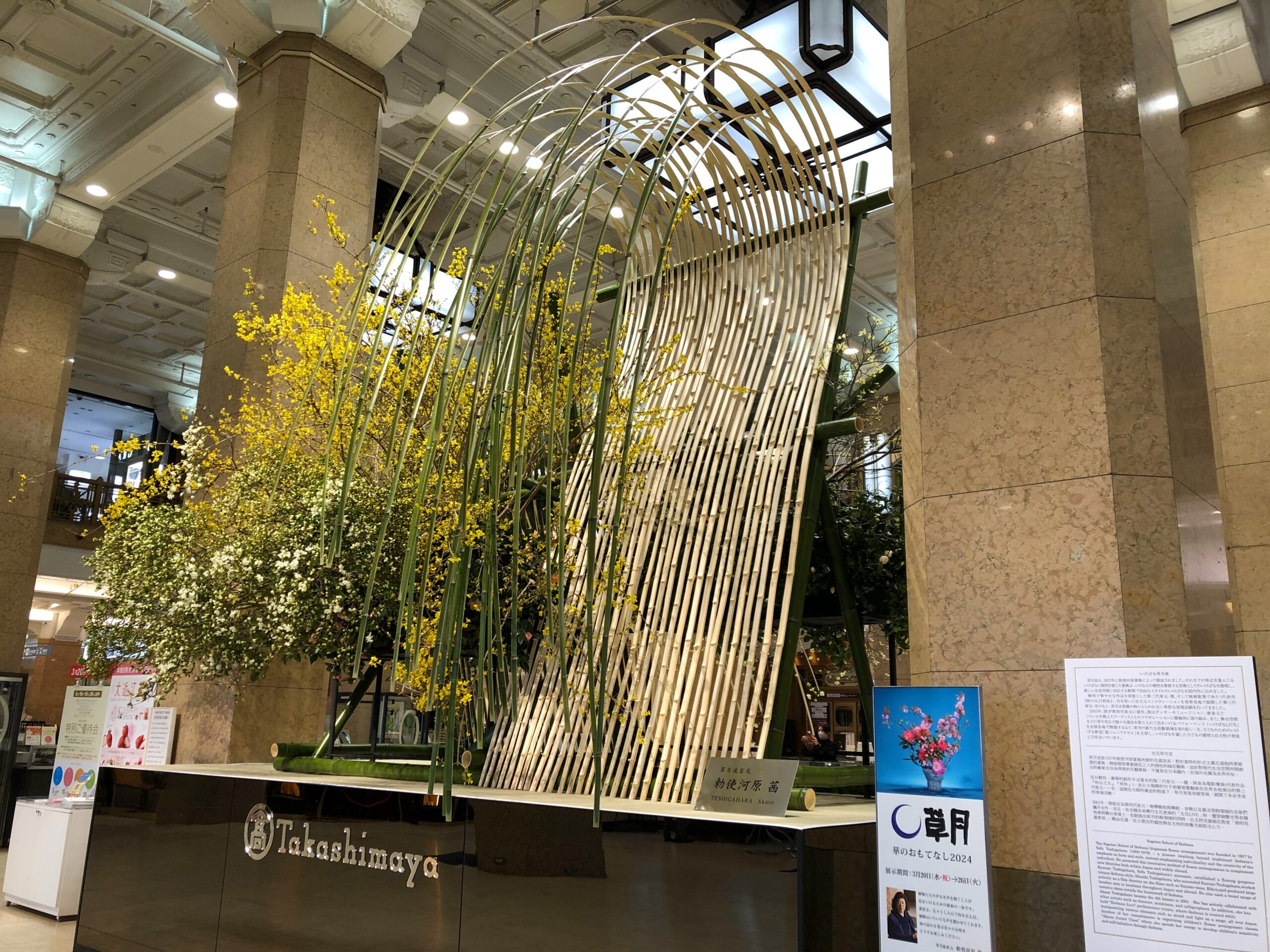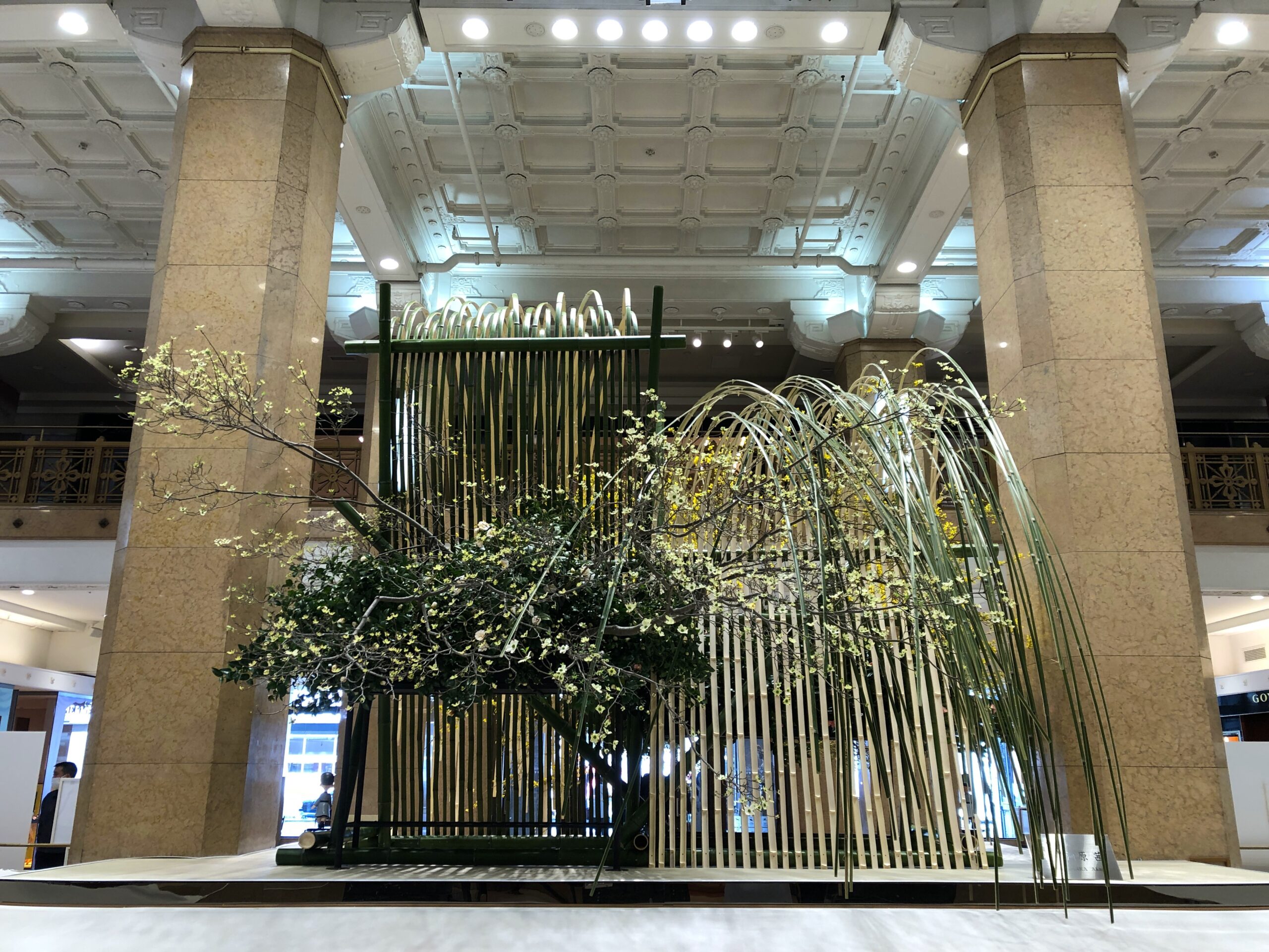 銀座四丁目交差点の商業施設『GINZA PLACE』での年末から年始にかけての全館装飾。年末に竹のインスタレーションを制作し、年始の1月3日、家元の初いけを公開制作にて披露。新年、銀座を歩くお客様に楽しんでいただいた。