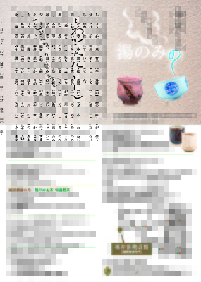 この展覧会では数ある食器の中から、日常生活において身近な食器の一つである「湯のみ」を取り上げました。「湯のみ」の中には一点一点異なる使用する人のこだわりが詰まったものです。日本のやきもの文化の一端を、伝統のやきもの文化の街、福井越前陶芸村でご覧いただけます。
