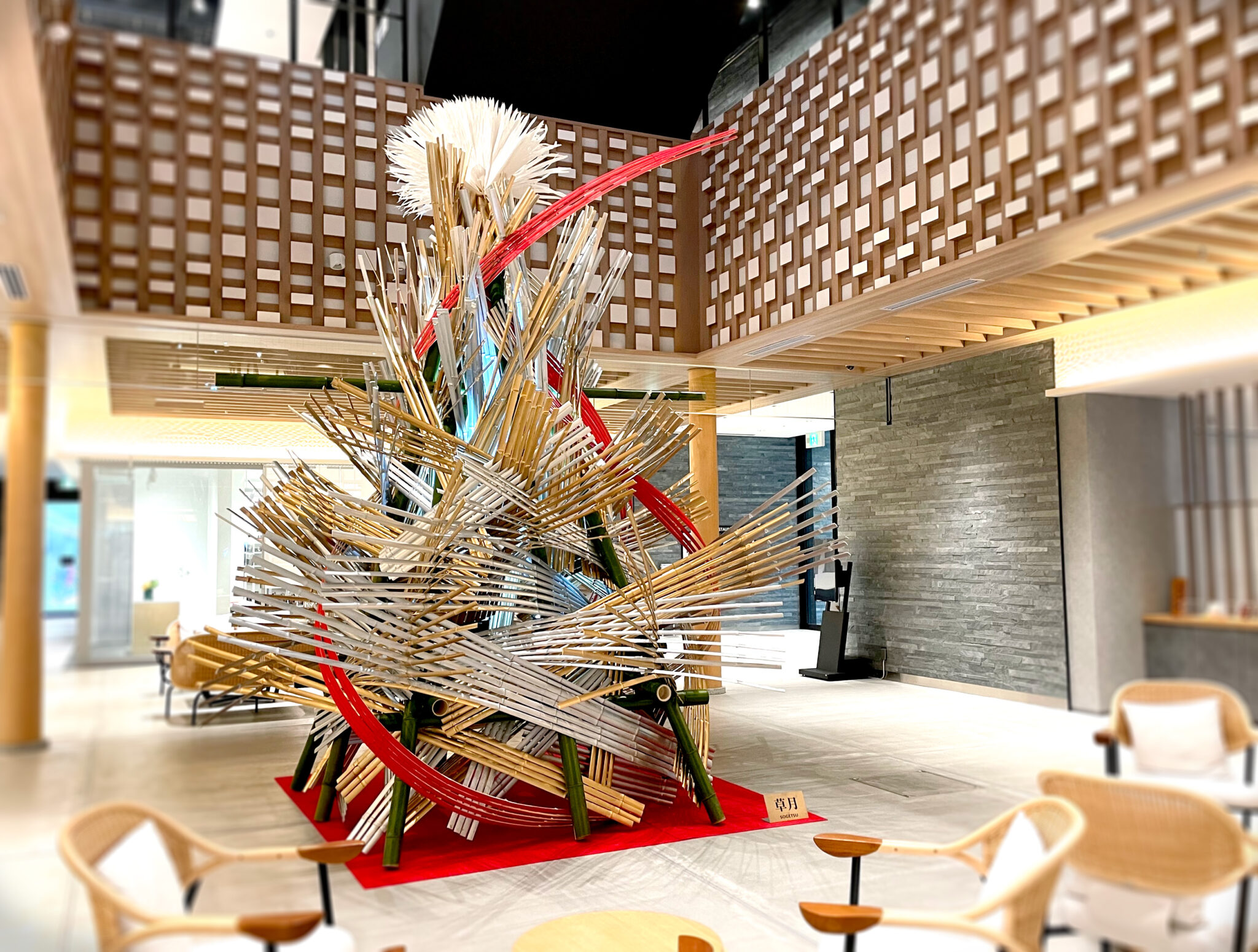 銀座四丁目交差点の商業施設『GINZA PLACE』での年末から年始にかけての全館装飾。年末に竹のインスタレーションを制作し、年始の1月3日、家元の初いけを公開制作にて披露。新年、銀座を歩くお客様に楽しんでいただいた。
