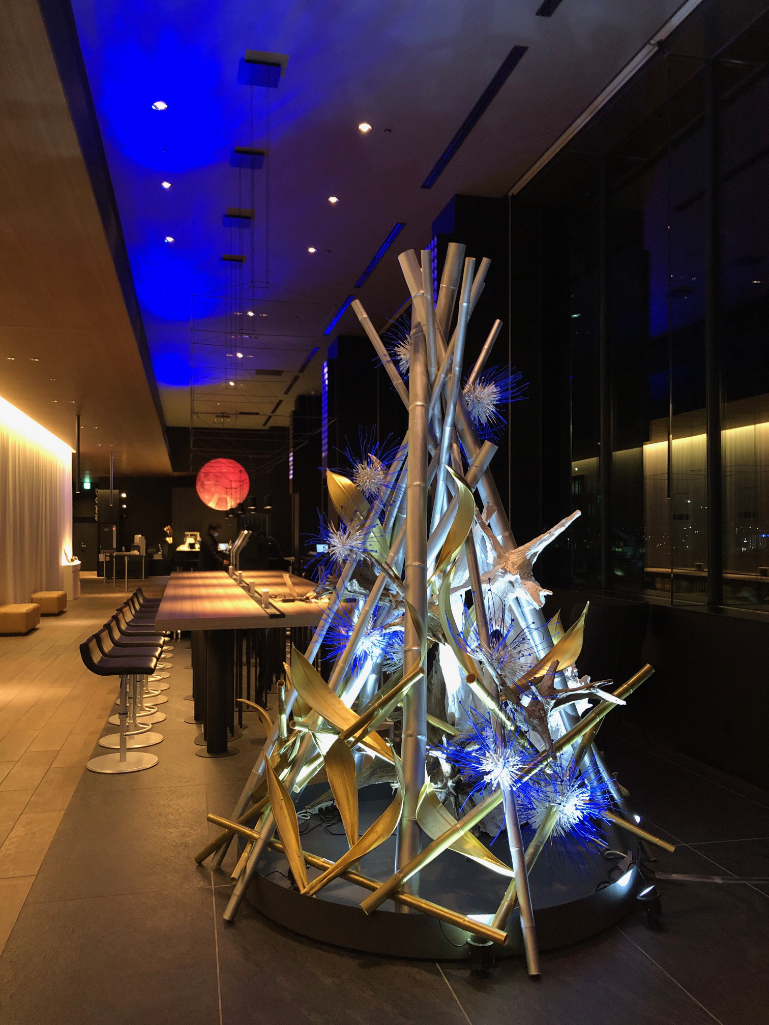 建築家・隈研吾のフロアを存分に生かす装飾を実施。四季折々の大作がロビーに使用されている木々をさらに引き立て、『ここでしか見られない季節』を表現。装飾設置箇所は四方が水で覆われており、せせらぎを聴きながら装飾を見て楽しめる。