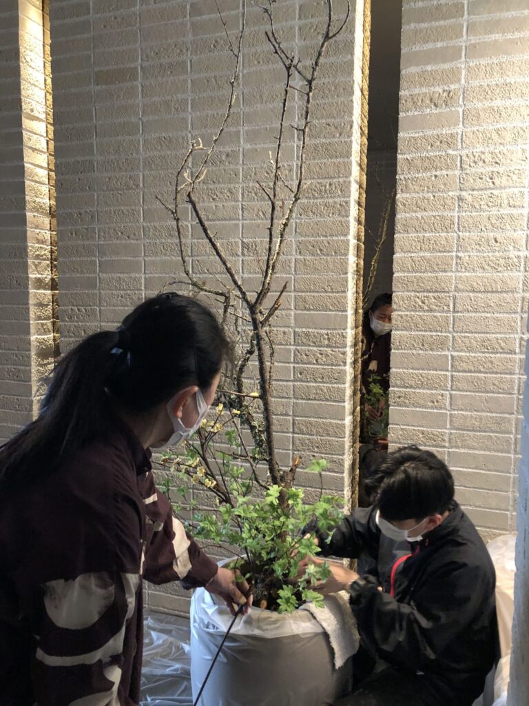 銀座四丁目交差点の商業施設『GINZA PLACE』での年末から年始にかけての全館装飾。年末に竹のインスタレーションを制作し、年始の1月3日、家元の初いけを公開制作にて披露。新年、銀座を歩くお客様に楽しんでいただいた。