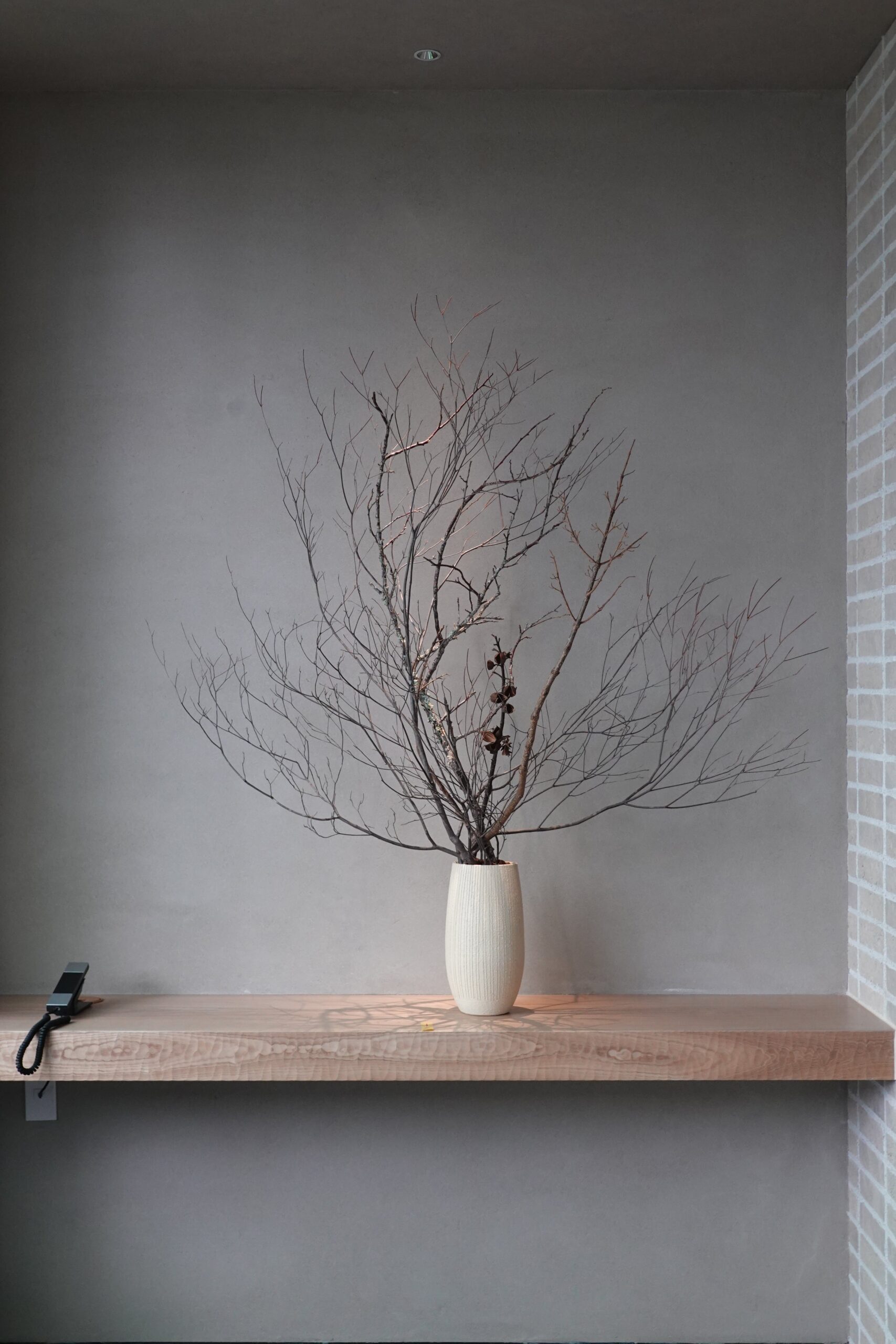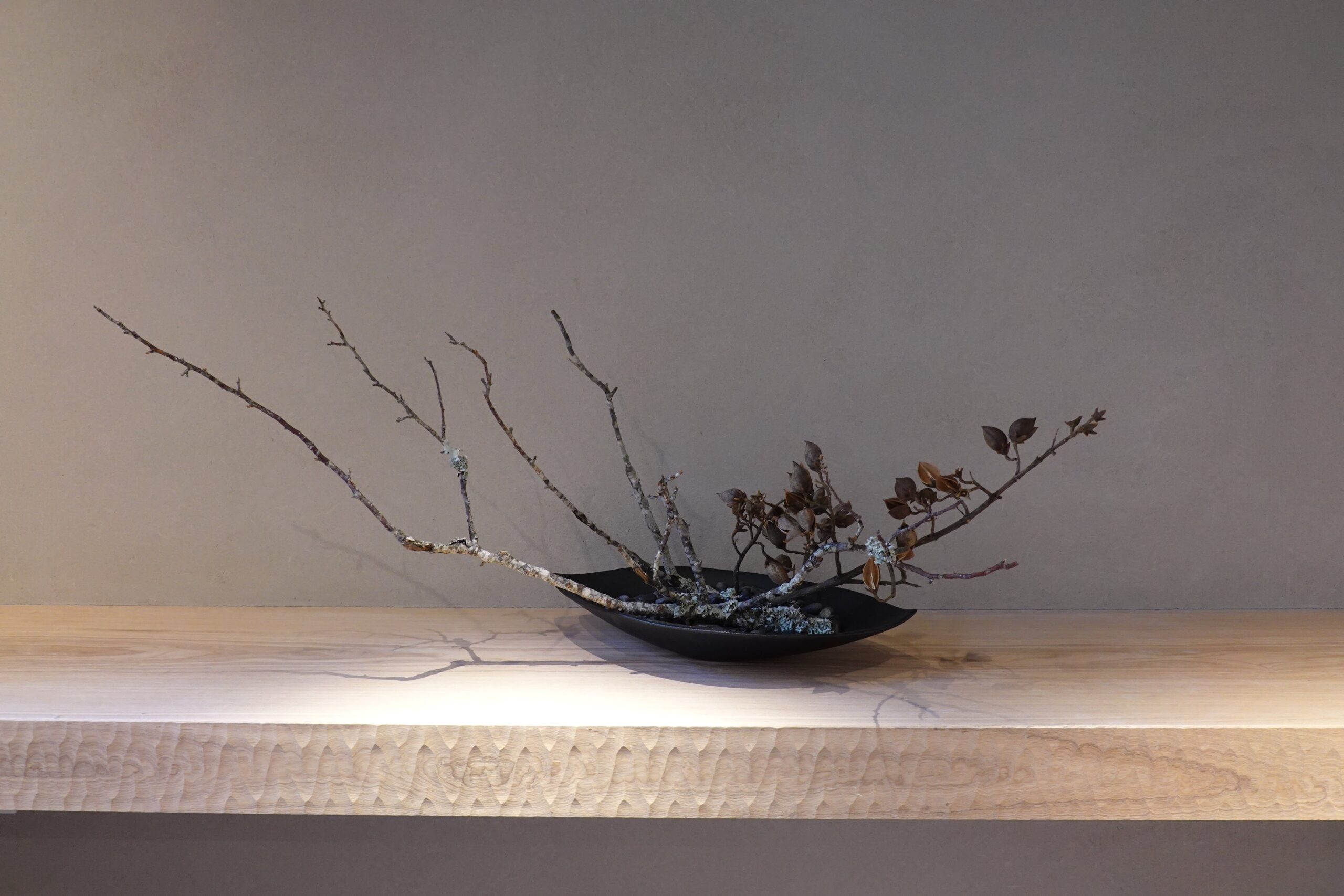 経済産業大臣の指定を受けた全国の伝統工芸品を数多く集め、展示販売しているアンテナショップ「伝統工芸青山スクエア」で制作した作品。 四季を感じる空間を演出してもらいたいとの依頼により、一年を通してその季節を感じる素材を厳選して使用オープニング時は勅使河原茜がお祝い花をいけ、その後は草月流の作家達が制作展示を担当。