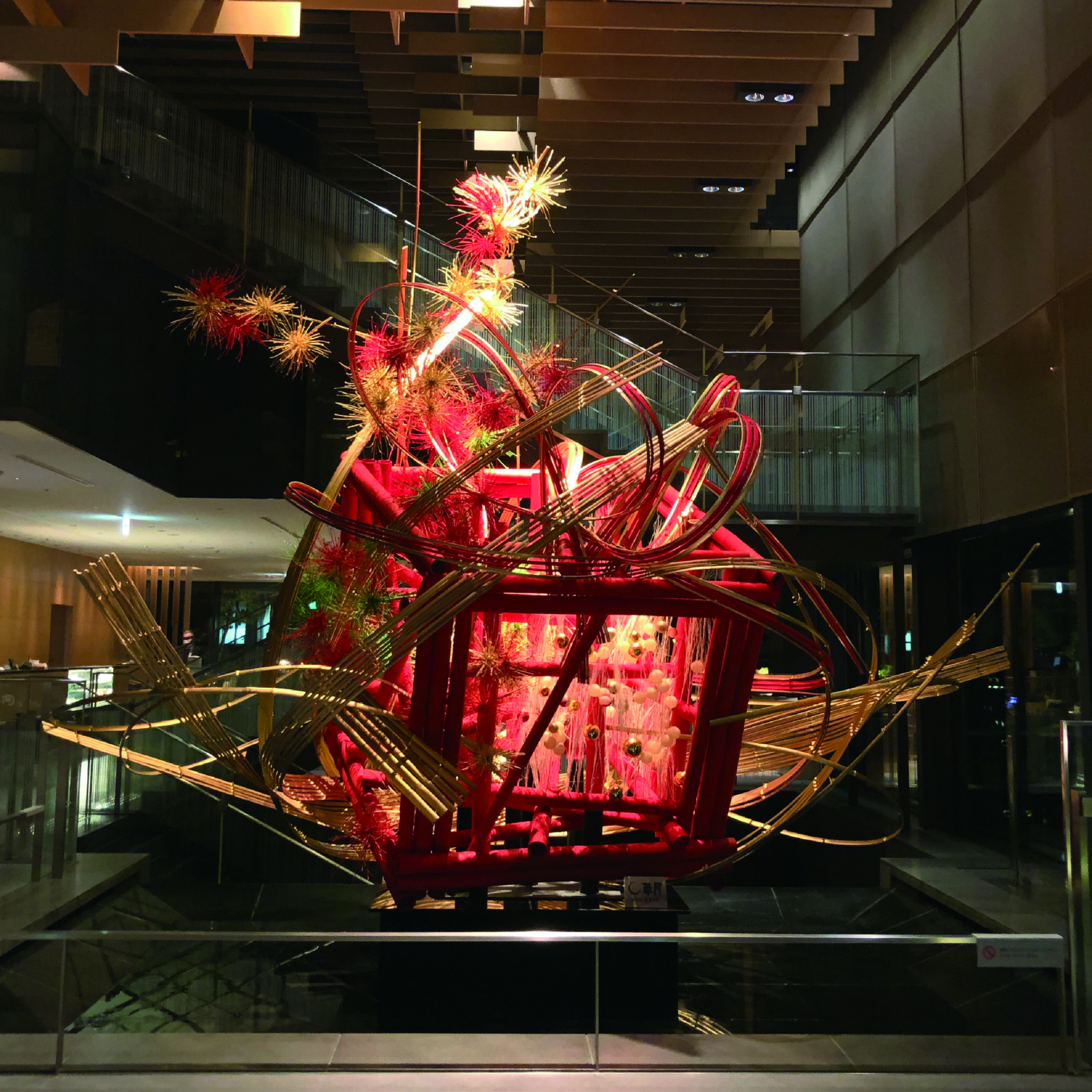 銀座四丁目交差点の商業施設『GINZA PLACE』での年末から年始にかけての全館装飾。年末に竹のインスタレーションを制作し、年始の1月3日、家元の初いけを公開制作にて披露。新年、銀座を歩くお客様に楽しんでいただいた。